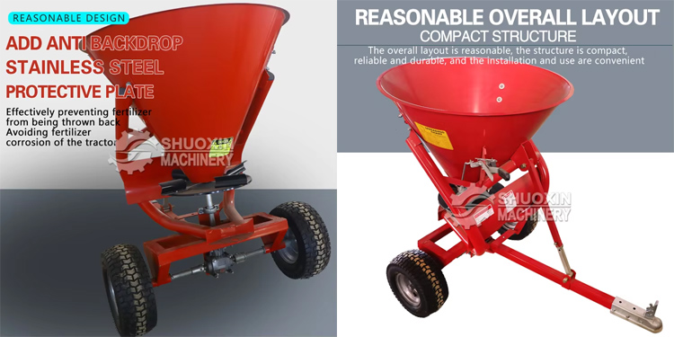 அதன் கூம்பு கட்டமைப்பு வடிவமைப்பு மற்றும் படிப்படியான ஆகர் பிளேடுகளுடன், சிறுமணி உரங்கள், கரிம உரங்கள் மற்றும் உரம் போன்ற பல்வேறு வகையான பொருட்களை திறம்பட கையாள முடியும். இது டீசிங் முகவர்களையும் பரப்பலாம். நசுக்குதல் மற்றும் வெளியேற்றத்தின் மென்மையின் சீரான தன்மை பல்வேறு உரங்களின் சிறப்பியல்புகளுக்கு ஏற்றது. சரிசெய்யக்கூடிய உர வெளியேற்ற துறைமுகங்கள் மற்றும் பரவுகின்ற வட்டின் சுழற்சி வேகத்துடன் இணைந்து, இது வெவ்வேறு துகள் அளவுகள் மற்றும் ஈரப்பதம் உள்ளடக்கங்களின் பொருட்களுடன் அதன் பொருந்தக்கூடிய தன்மையை மேலும் மேம்படுத்துகிறது.
