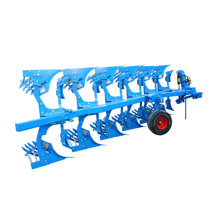 இன் கோர்மீளக்கூடிய ஃபிளிப் கலப்பைஅதன் ஹைட்ராலிக் புரட்டுதல் பொறிமுறையில் பொய், இது புரட்டும் சிலிண்டர், சஸ்பென்ஷன் ஃபிரேம், கலப்பை சட்டகம் மற்றும் புரட்டுதல் அச்சு போன்ற கூறுகளைக் கொண்டுள்ளது. செயல்பாட்டின் போது, டிராக்டர் புலத்தின் விளிம்பை அடைந்து ஒரு திருப்பத்தை ஏற்படுத்த வேண்டியிருக்கும் போது, இயக்கி டிராக்டரின் ஹைட்ராலிக் கட்டுப்பாட்டு அமைப்பை இயக்குகிறது, கலப்பை சட்டத்தை புரட்டும் அச்சில் சுழற்றுகிறது. கலப்பை சட்டகம் தரையில் செங்குத்தாக இருப்பதற்கு நெருக்கமான நிலைக்கு சுழலும் போது, ஹைட்ராலிக் அமைப்பு தானாகவே எண்ணெய் ஓட்ட திசையை மாற்றிவிடும், இதனால் சிலிண்டரின் பிஸ்டன் தடி நீட்டிக்கத் தொடங்குகிறது. பிஸ்டன் தடி விரிவடையும் போது, முதலில் வேலை செய்யாத நிலையில் இருந்த மற்ற கலப்பை உடல்கள் வேலை செய்யும் நிலைக்கு சுழலும் வரை கலப்பை சட்டகம் தொடர்ந்து சுழல்கிறது. இந்த கட்டத்தில், கலப்பை சட்டகம் மீண்டும் தரையில் இணையாக உள்ளது, ஒரு திருப்பத்தை முடிக்கிறது.